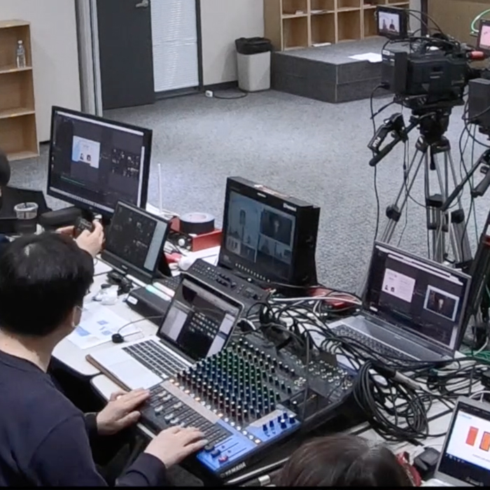 비대면 국내외 행사, 다양한 플랫폼 송출, 온/오프 하이브리드 중계 시스템.